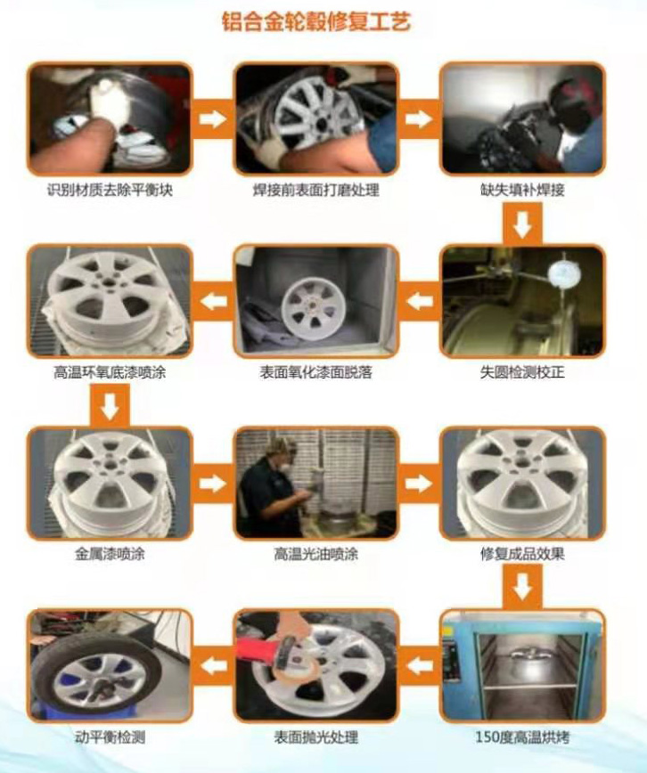 輪轂表面翻新。若只能修復(fù)輪轂形狀,而無(wú)法翻新輪轂表面,那輪轂修復(fù)也失去修復(fù)的意義。汽車鋁合金輪轂表面可以分為四大類,即:噴漆面,拋光面,數(shù)控(CNC)面與電鍍面。我司能提供處理鋁合金輪轂表面拋光,電鍍銀等技術(shù)、工藝與材料;并能處理CNC表面等問題。翻新后的輪轂表面,無(wú)論是在外觀上,硬度上都能達(dá)到OEM品質(zhì)要求。